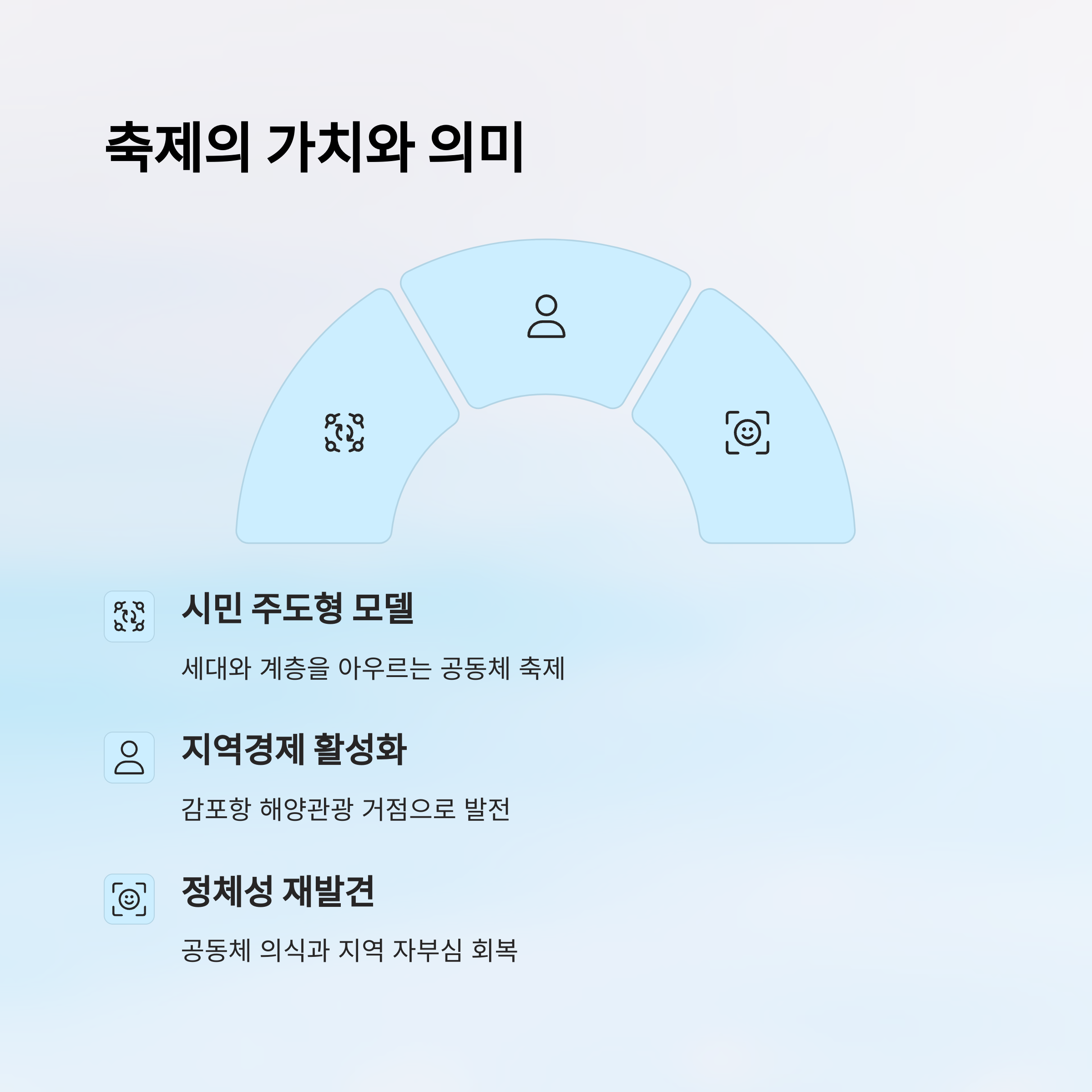 과거를 기념하고, 현재를 즐기고, 미래를 설계하는 의미를 담은 행사랍니다. 시민 주도형 축제라는 점이 가장 큰 특징이라, 지역민 스스로 축제를 만들고 운영하는 과정 자체가 감동이에요.