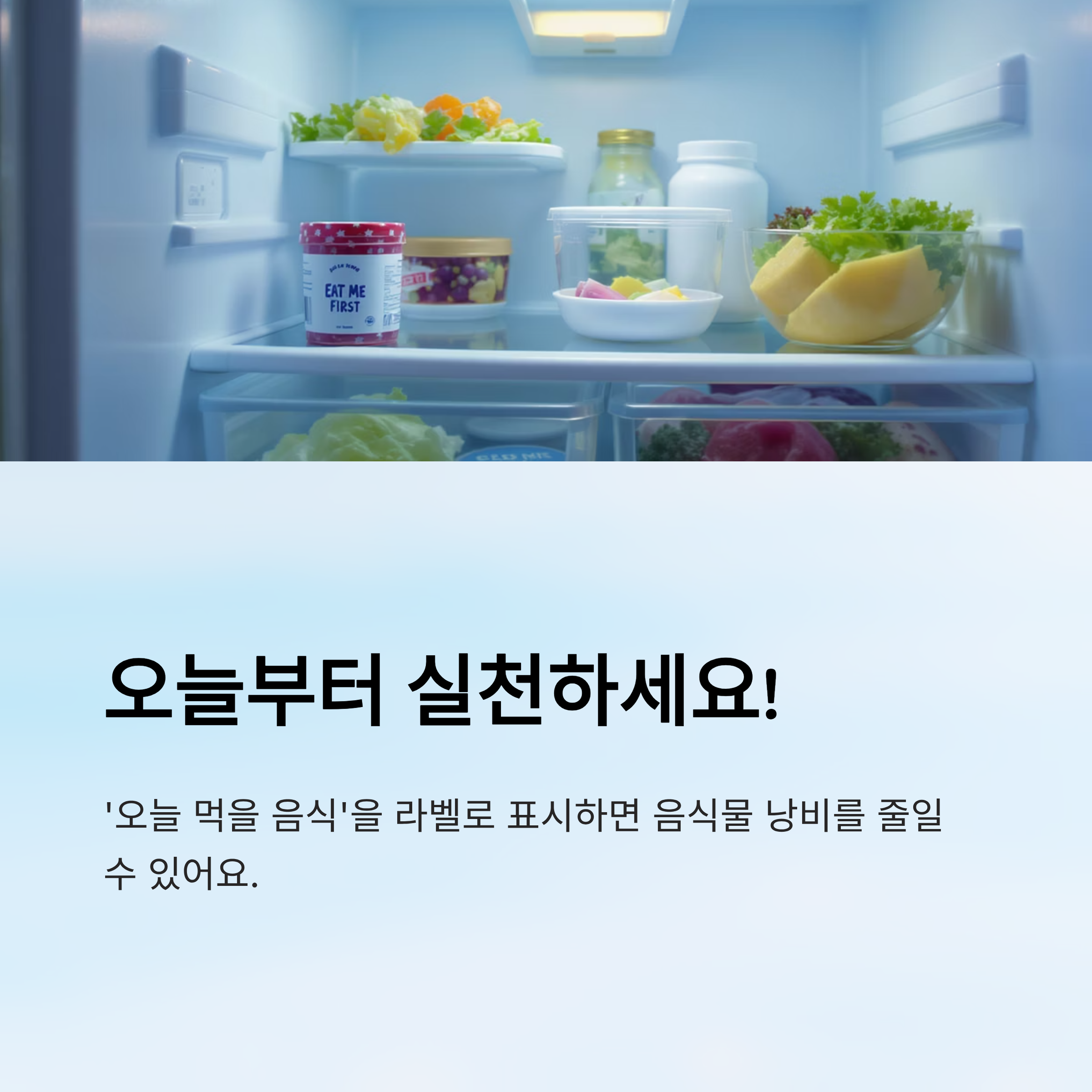 냉장고 안쪽 벽면에 "오늘 먹을 음식" 스티커를 붙여보세요.