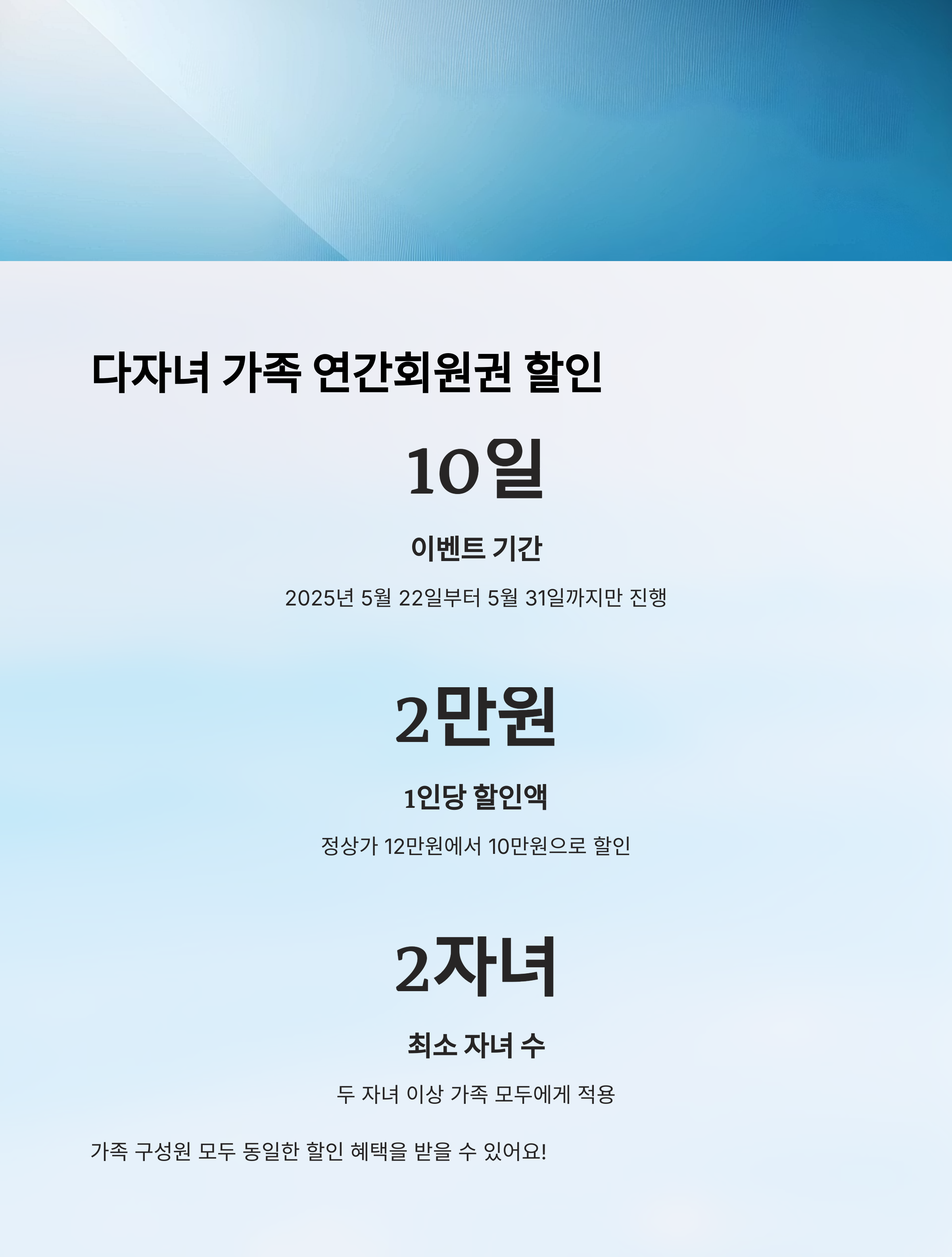 🆓 셋째 자녀 이상 연간회원권 무료 혜택
