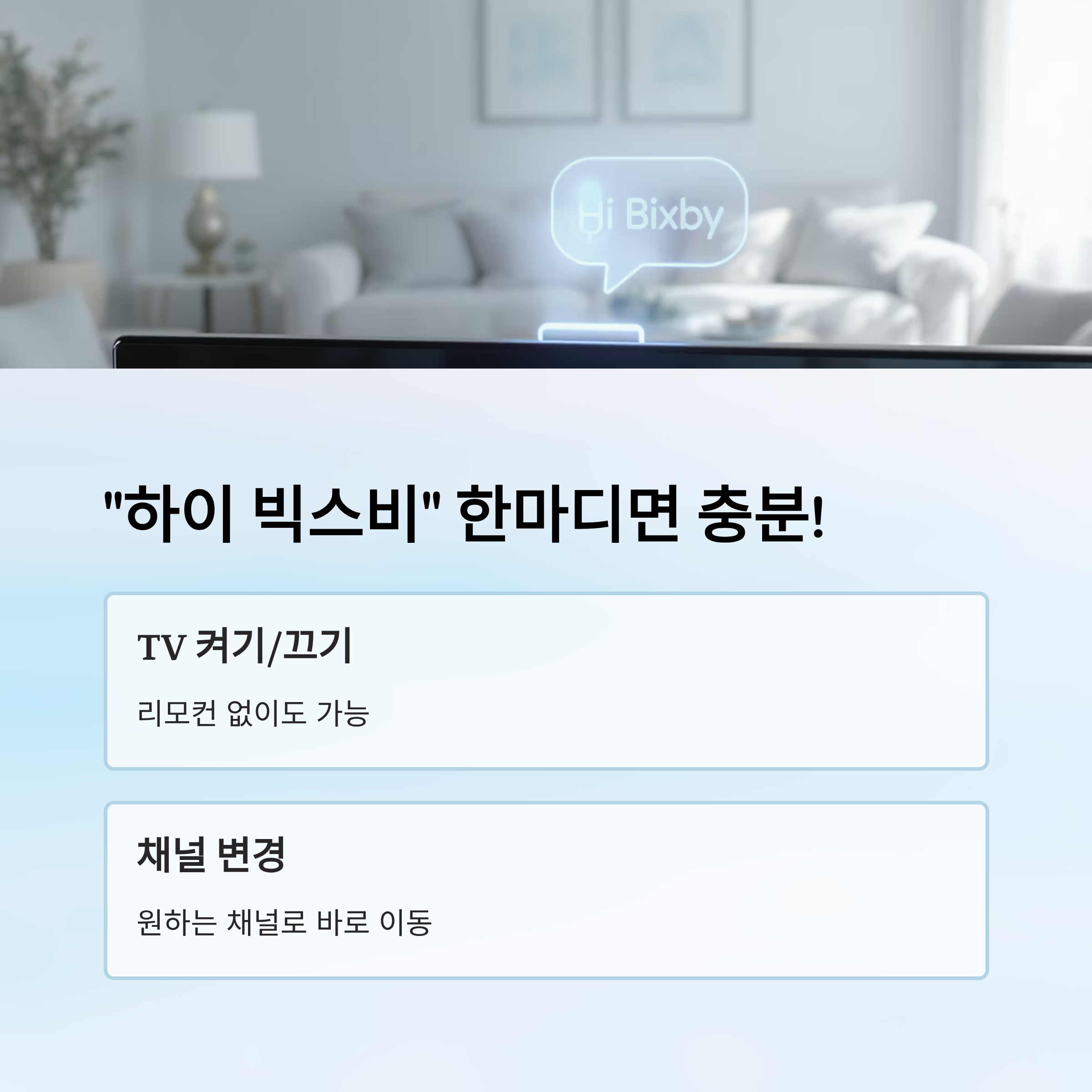 "하이 빅스비"나 "헤이 구글" 같은 호출어를 말하면 TV가 바로 반응하죠. [이미지2]