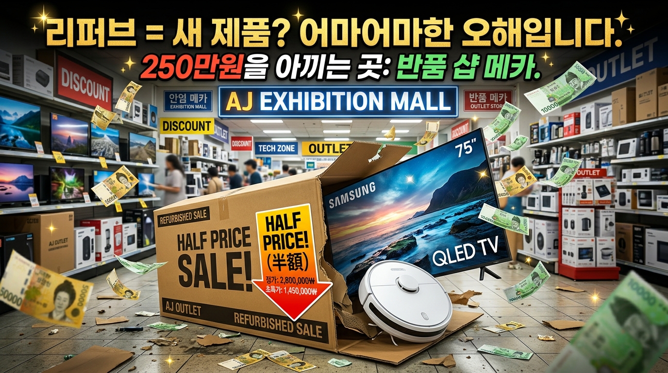 • A사 75인치 QLED TV: 정가 280만 원 → 전시품 145만 원 (박스 없음, 무결점 점검 완료)