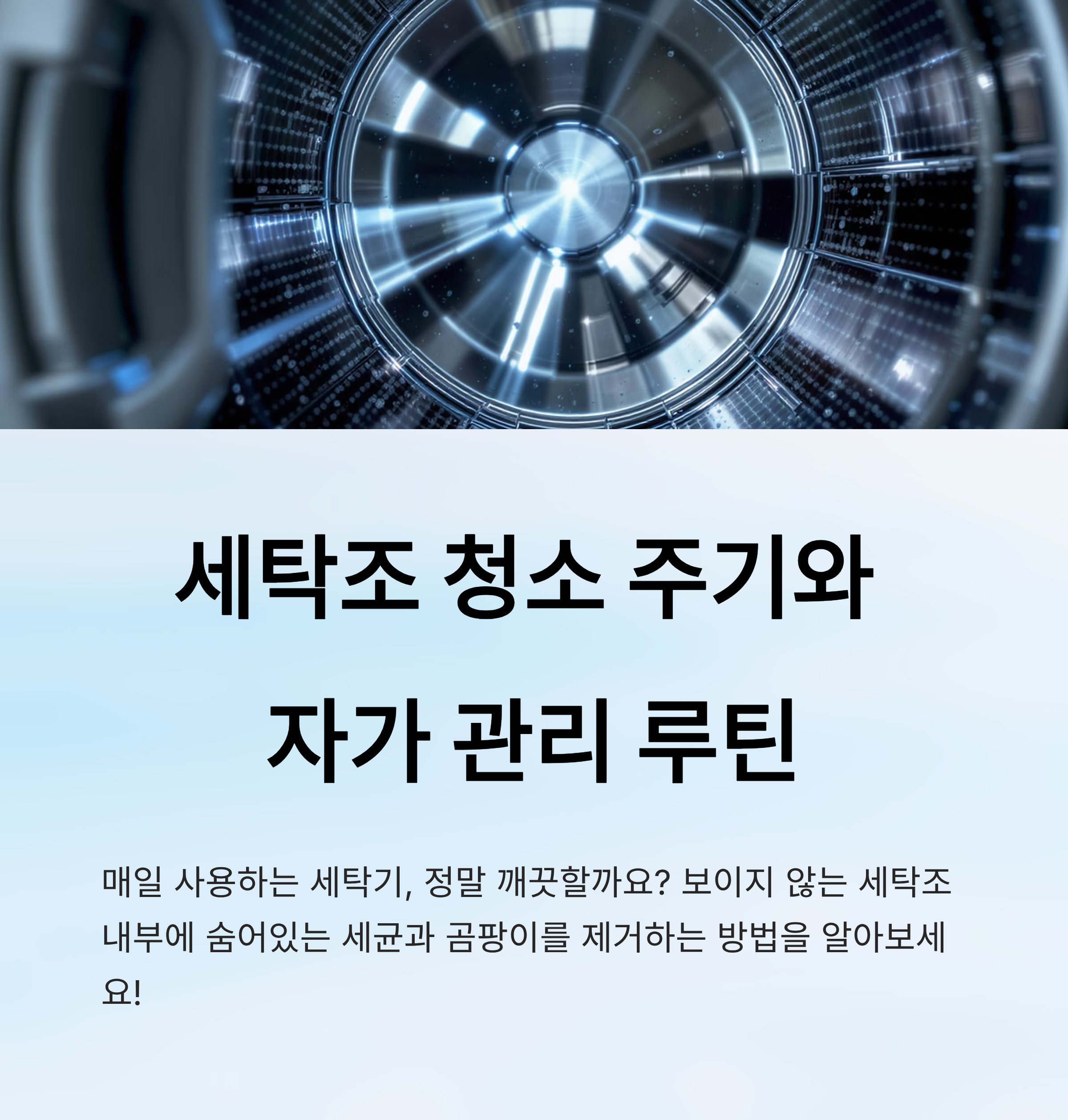 위생적인 세탁 환경은 건강한 생활로 이어져요. 세탁조 내부는 보이지 않기 때문에 더욱 신경 써야 하는 공간이에요. 세탁기 고장의 원인이 되기도 하고, 세탁 성능 자체를 떨어뜨릴 수도 있어요.
