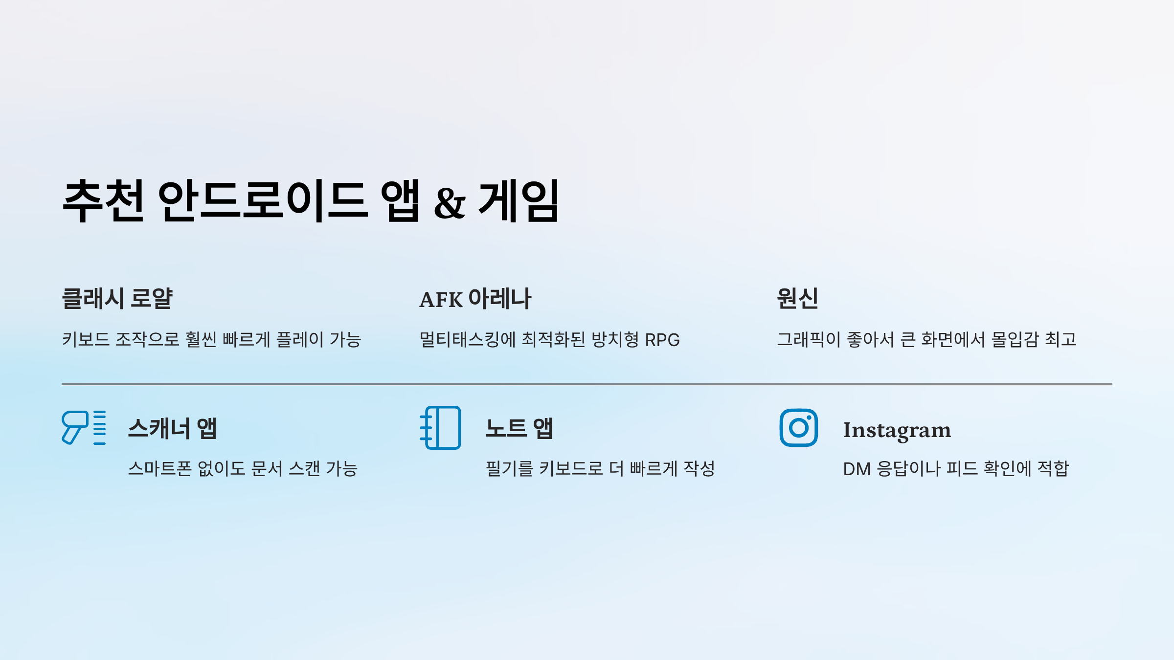 이제 안드로이드 앱을 설치할 수 있게 되었으니, 어떤 앱을 사용하면 좋을지 궁금하실 거예요. PC에서 실행하면 더 편리하거나 재미있는 앱 위주로 소개해 드릴게요. 게임은 물론이고, 생산성 앱도 포함해서 골고루 알려드릴게요!