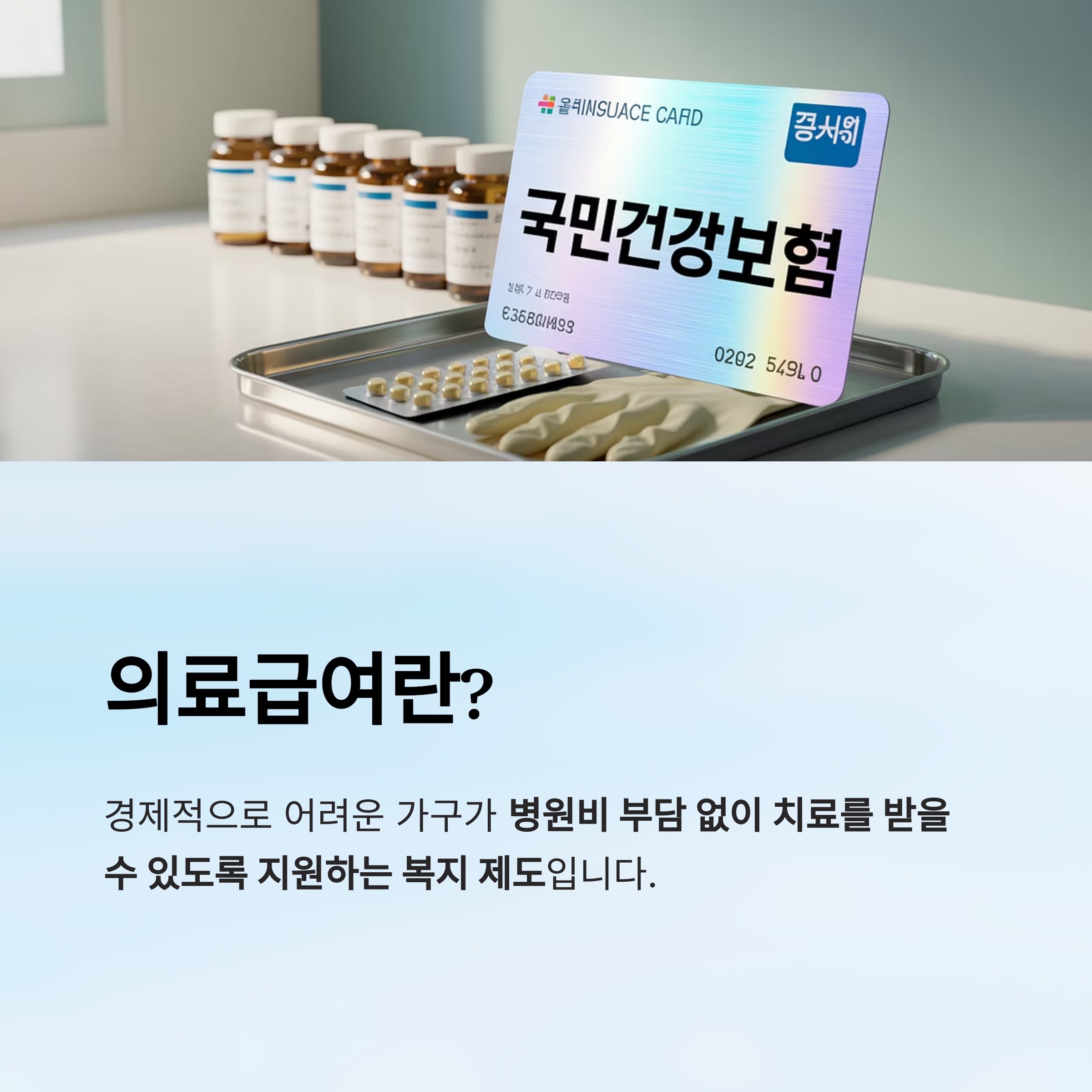 💡 의료비 부담이 큰 분들에게 국가에서 지원하는 **의료급여 제도**가 있어요. 특히 기초생활수급자와 차상위계층이라면 의료급여 혜택을 받을 수 있어요.