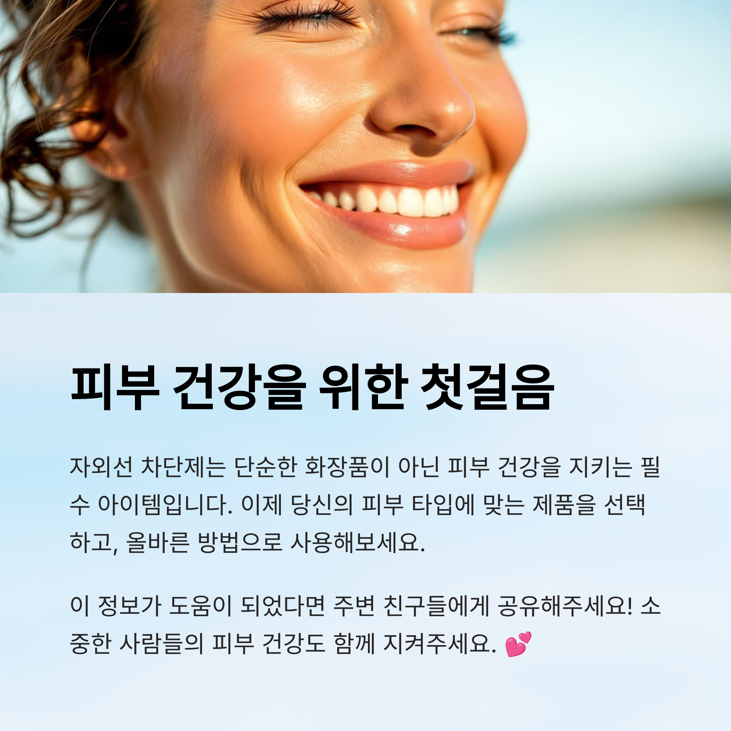 이처럼 자외선 차단제는 ‘무작정 바르기’보다 제대로 된 정보와 습관이 핵심이에요.