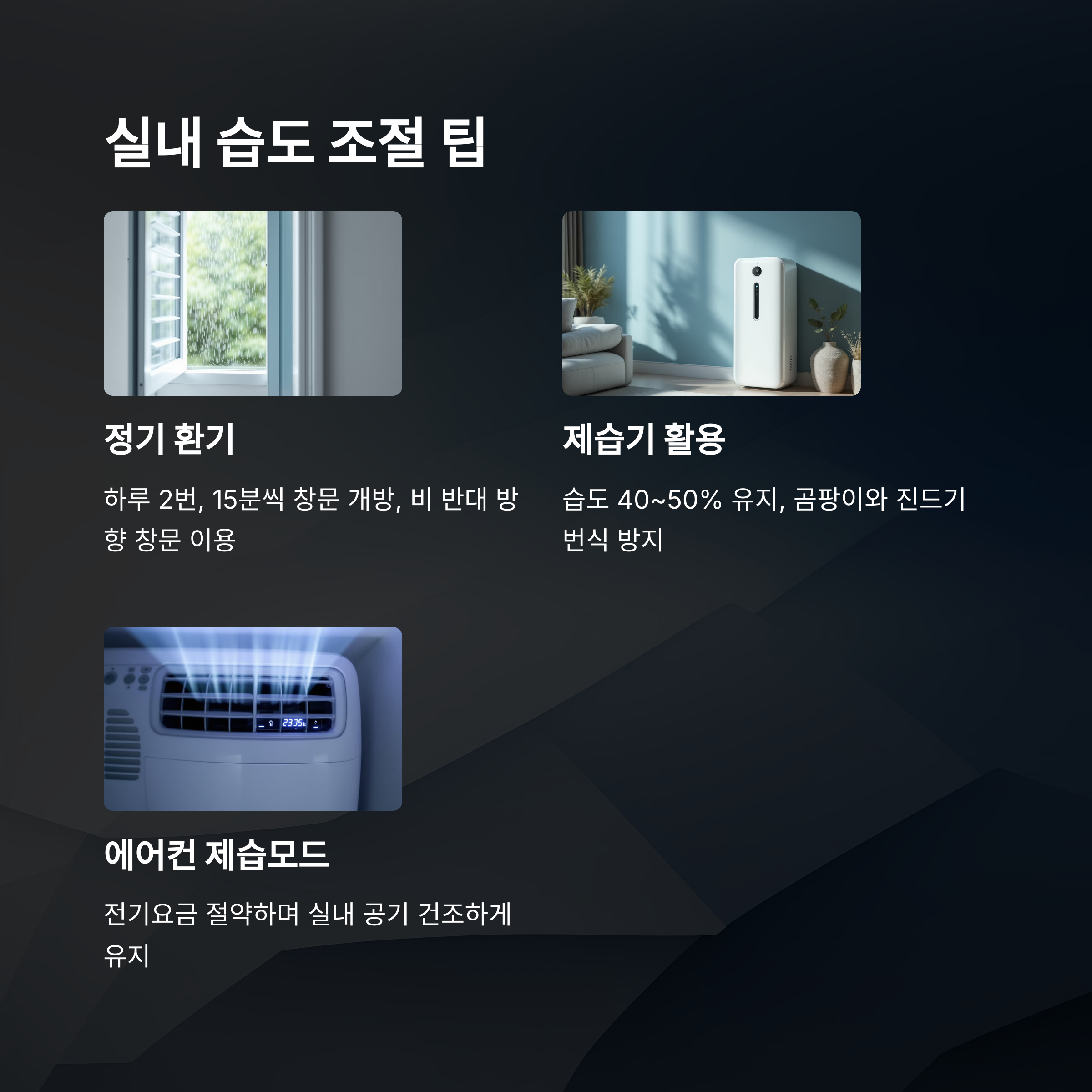 에어컨을 틀 때도 '제습 모드'를 활용하면 전기요금은 아끼면서도 실내 공기를 건조하게 만들어줘요. 요즘은 제습 전용 기능이 있는 공기청정기까지 다양하게 나와 있어서 상황에 맞게 선택하면 좋아요.