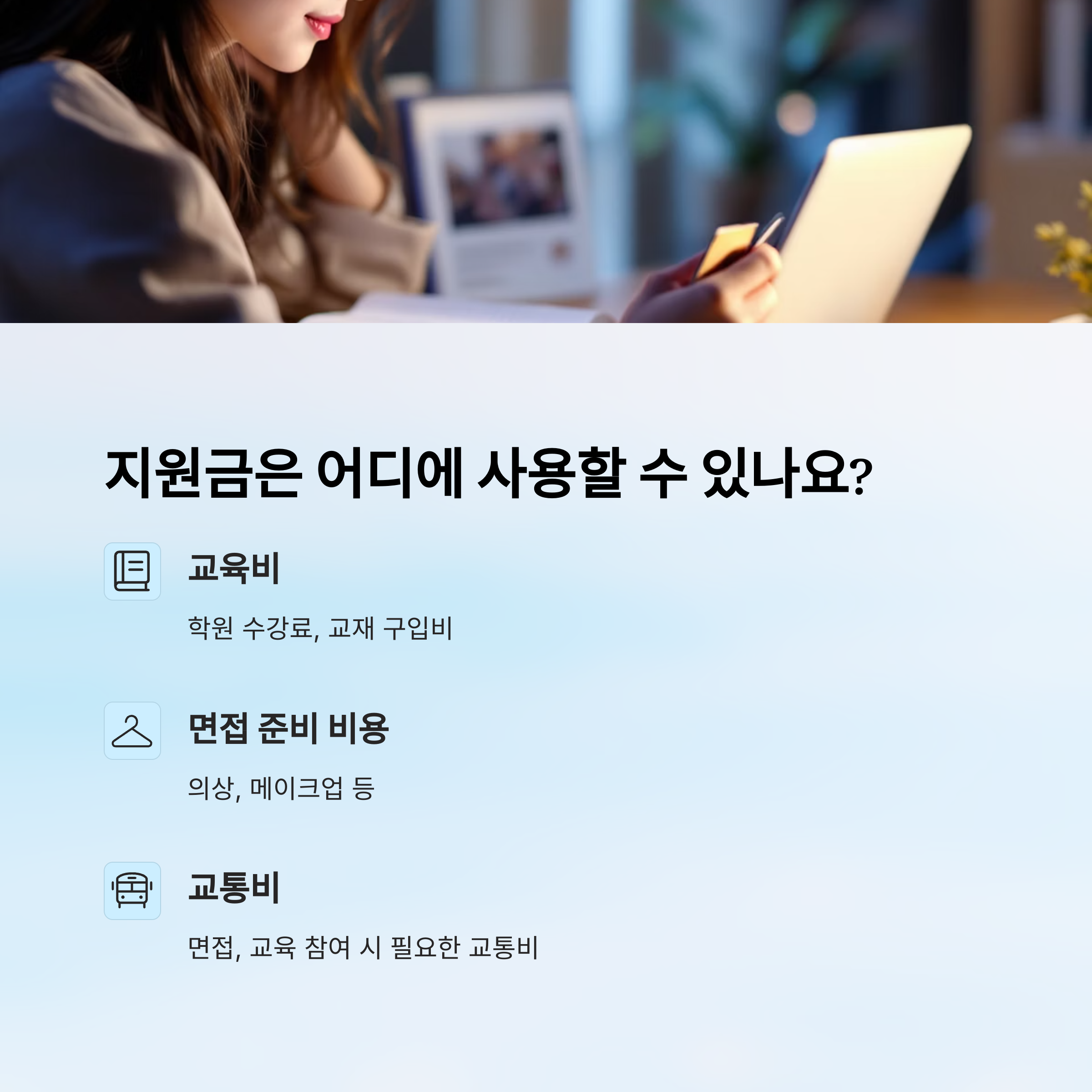| 사용 가능 항목 | 교육비, 면접비, 교통비 등 |