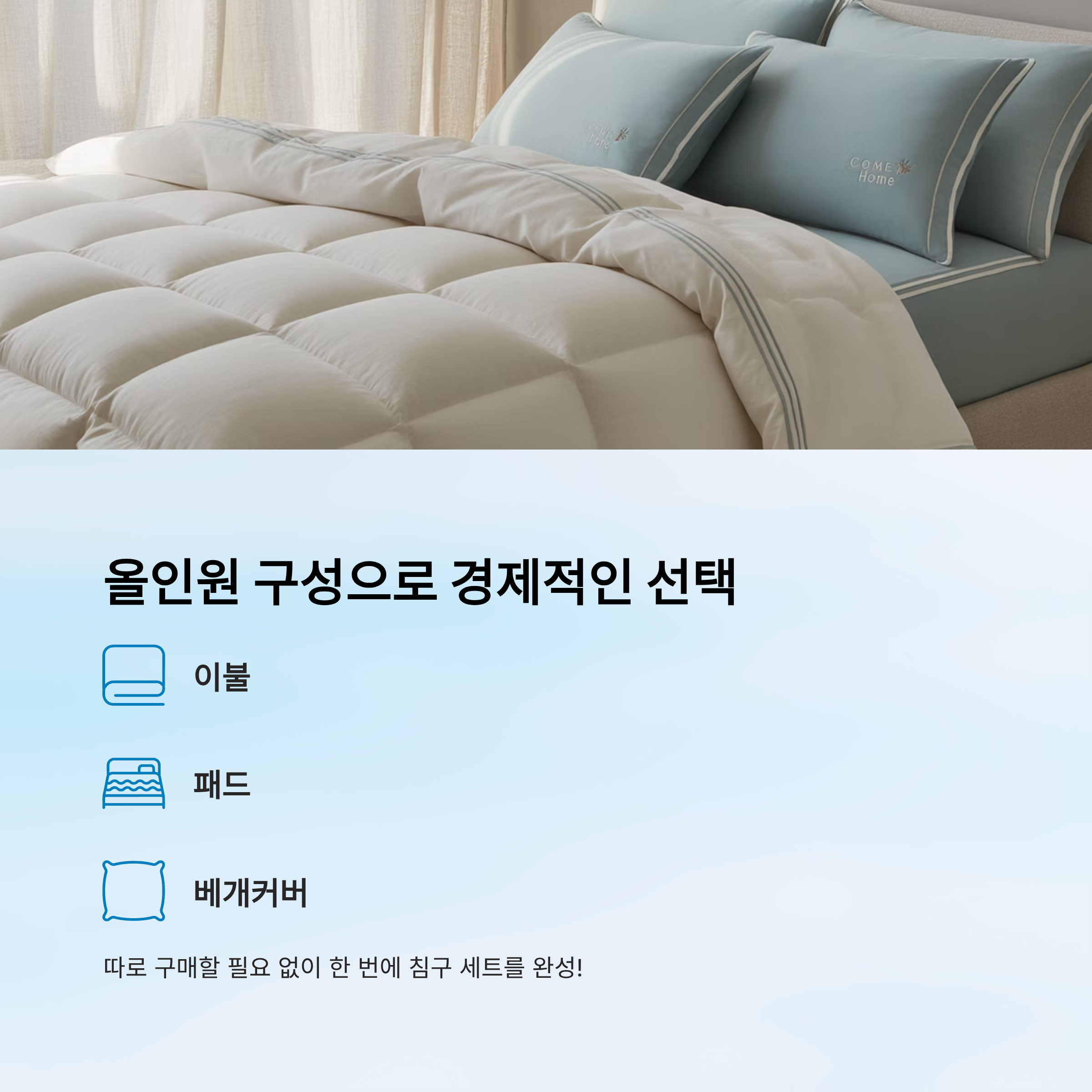 이 모든 것에 해당된다면, 더 이상 고민하지 말고 코멧 홈 차렵이불 세트를 만나보세요!