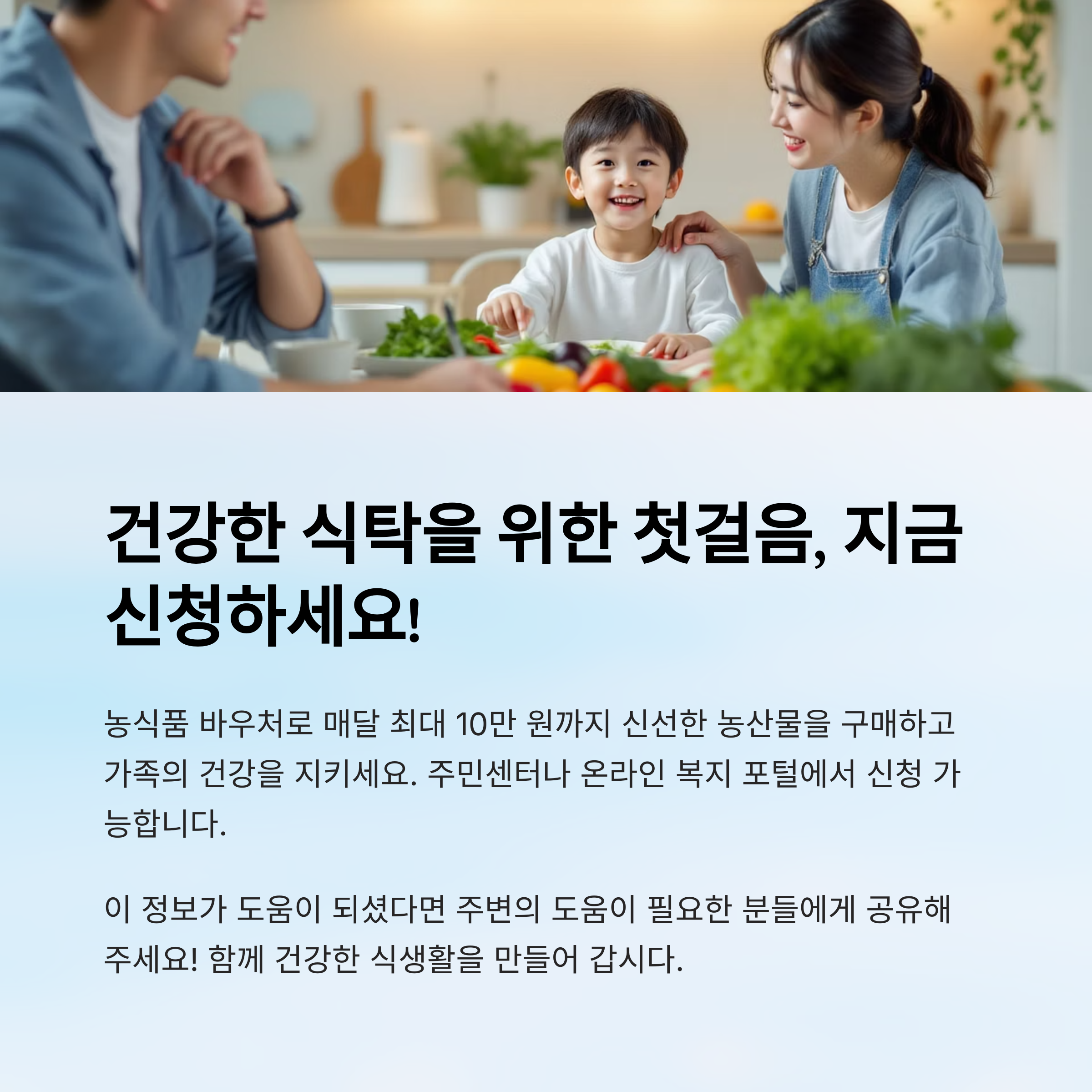 ✅ 농식품 바우처 제도를 알고 있나요? 이 제도는 경제적 어려움을 겪는 가구를 위해 신선한 농산물 구매를 지원하는 정부 정책이에요.