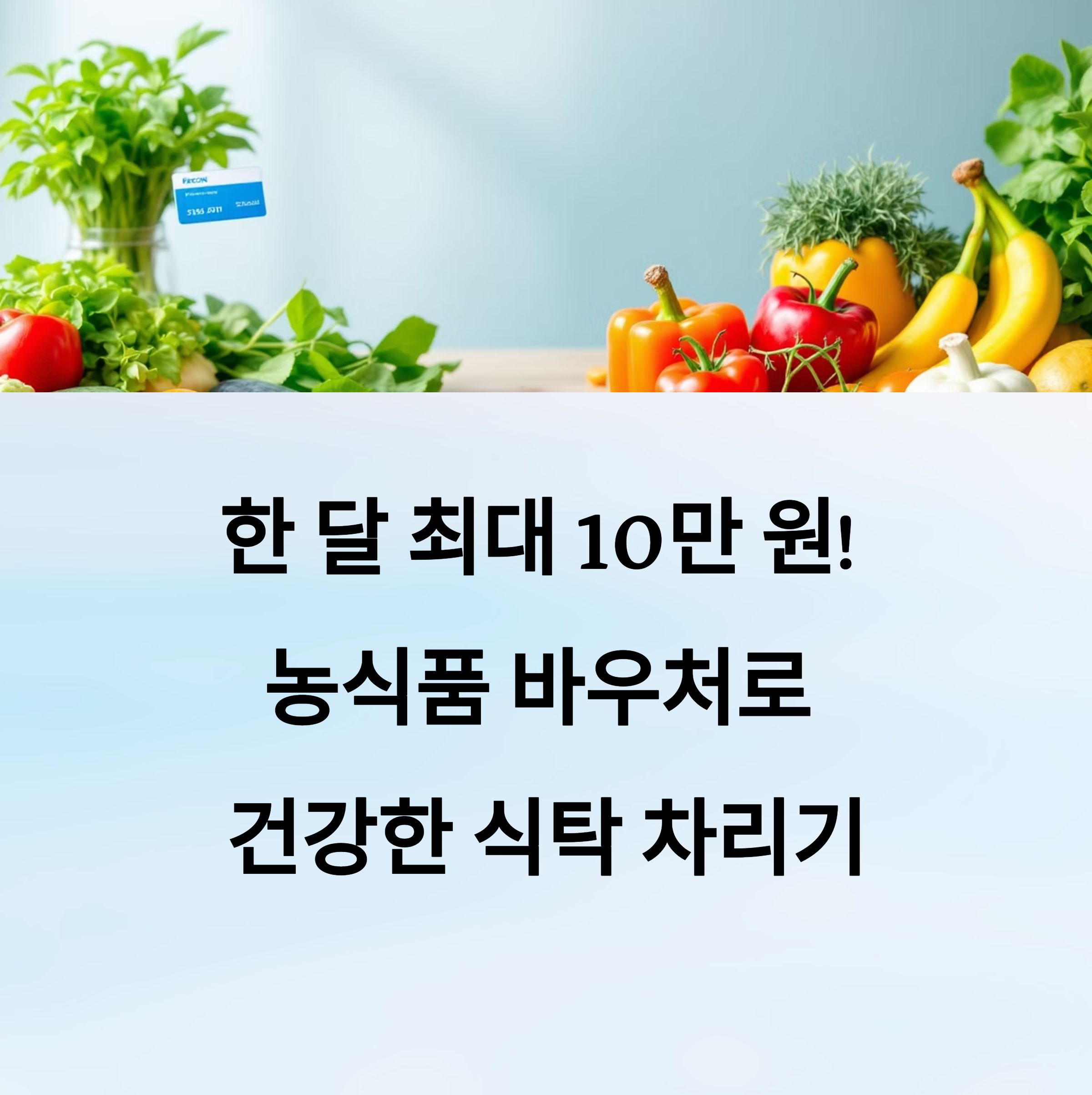 매달 최대 10만 원까지 지원받을 수 있고, 이를 통해 채소, 과일, 계란, 유제품 등 건강한 식재료를 구매할 수 있답니다! 🥦🍎