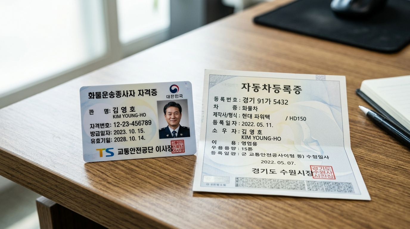 - 신청 서류: 화물운송종사자 자격증은 필수입니다.
