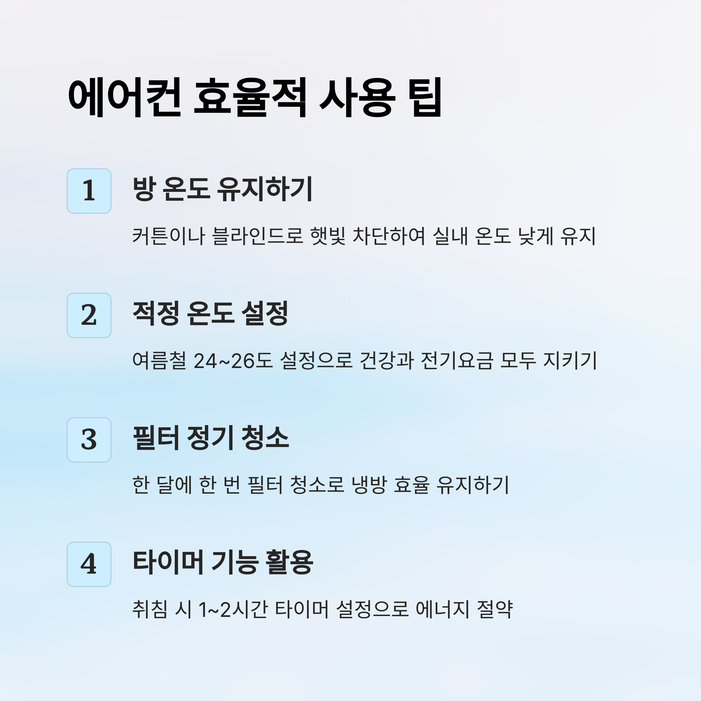 두 번째는 ‘적절한 온도 설정’이에요. 여름철에는 24~26도가 가장 이상적이에요. 너무 낮게 설정하면 전기요금이 확 오르고, 체감 온도 차이로 인해 건강에도 좋지 않을 수 있어요. 일정 온도를 유지하면서 서큘레이터를 함께 사용하면 냉방 효율이 더 높아져요.