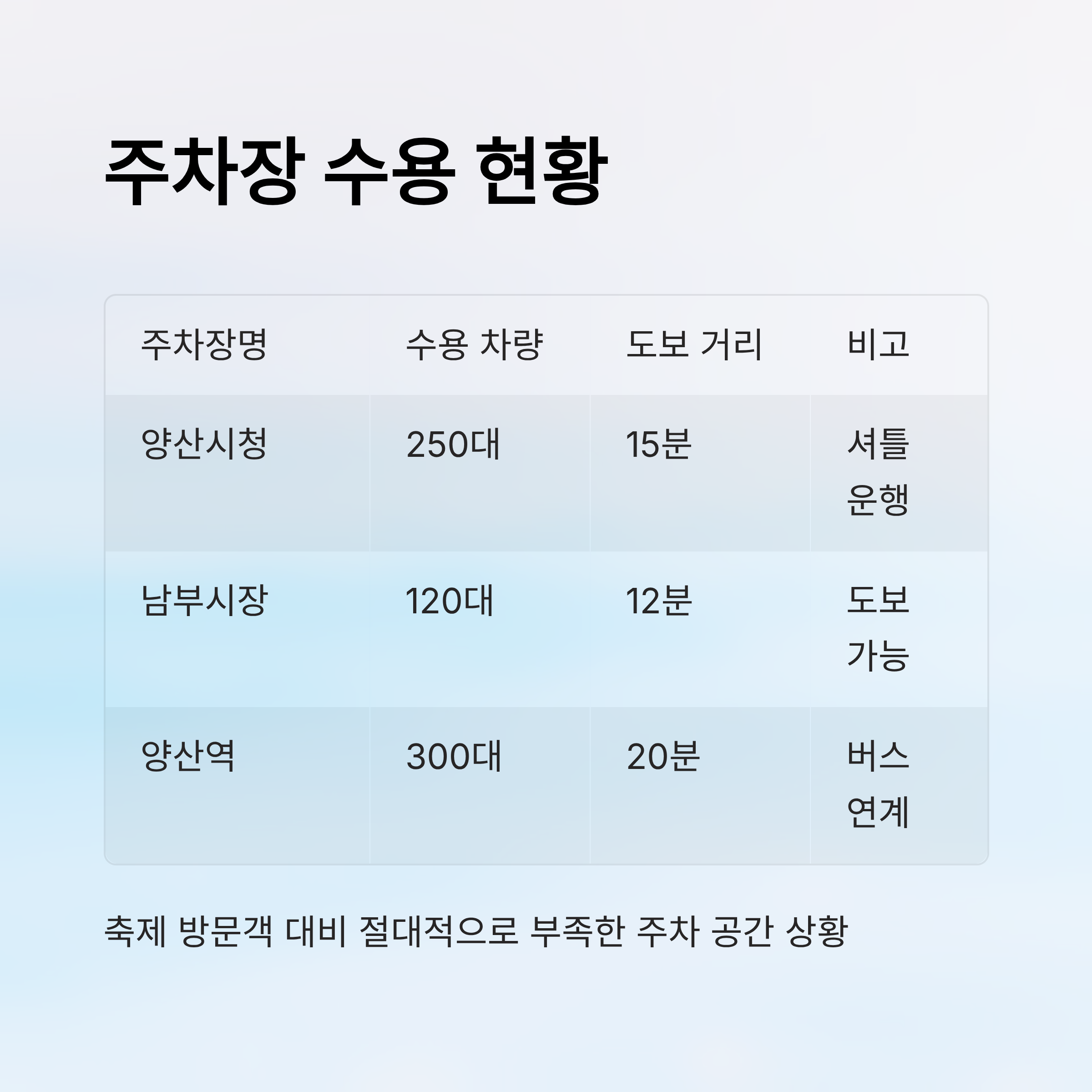 📊 양산 삽량문화축제 주차장 수용 현황표