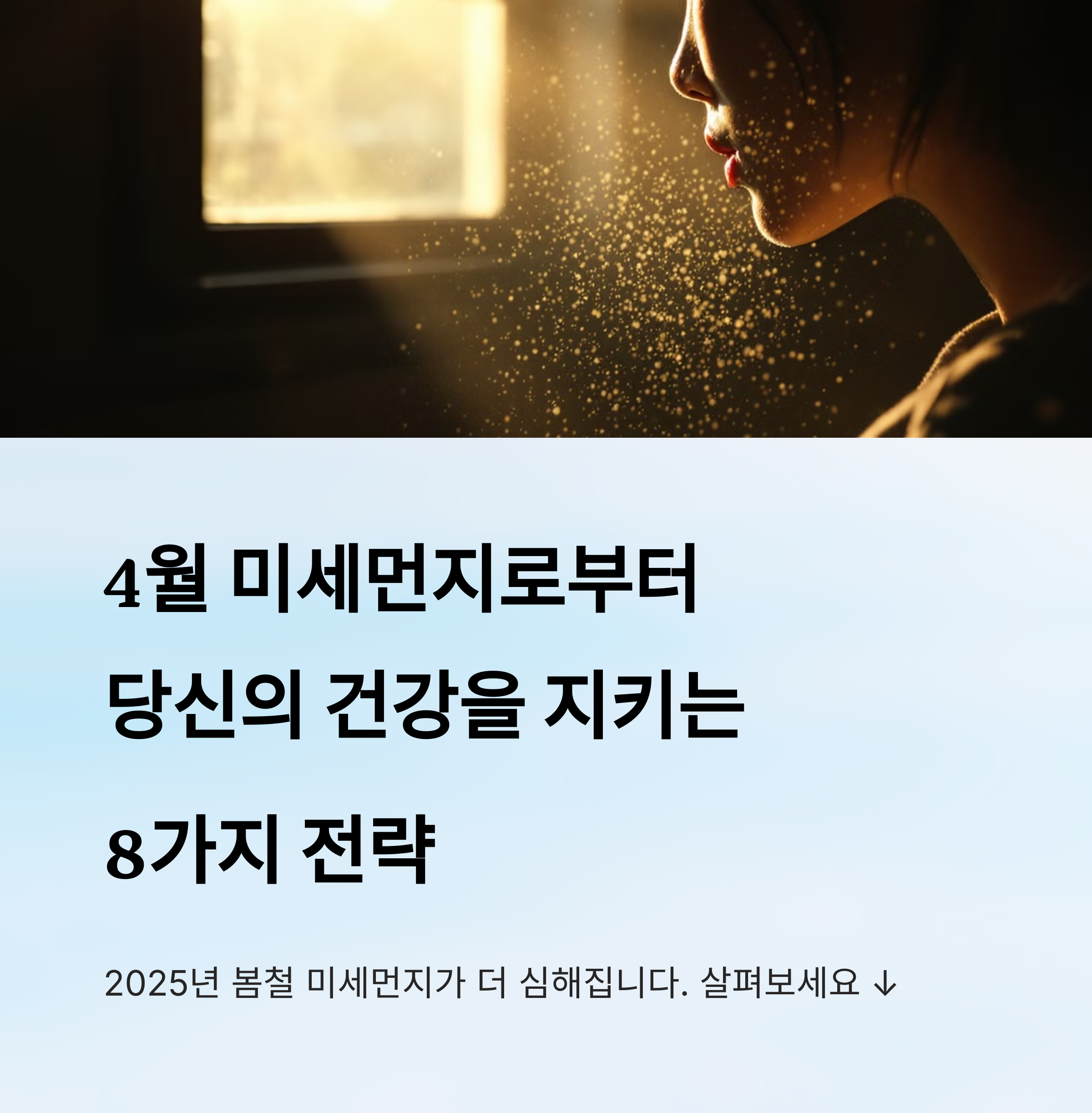 4월은 따뜻한 봄바람과 함께 미세먼지가 기승을 부리는 계절이에요. 꽃샘추위가 가시고 야외활동이 많아지는 이 시기, 미세먼지를 막기 위한 생활 속 실천이 필수랍니다.