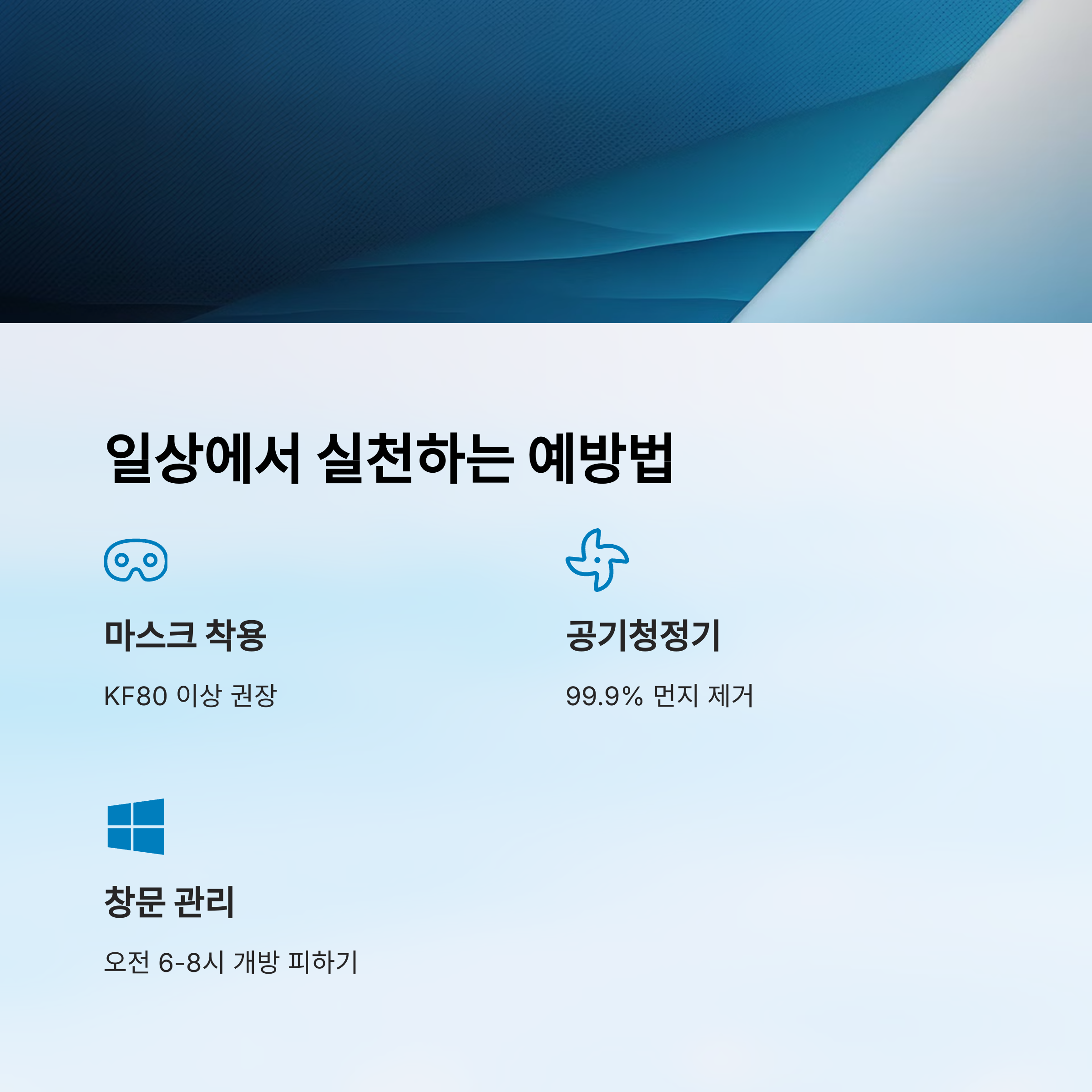A8. KF94 마스크 착용, 실내 공기청정, 항산화 식품 섭취, 앱 활용이 핵심이에요. 지금부터 실천해봐요!